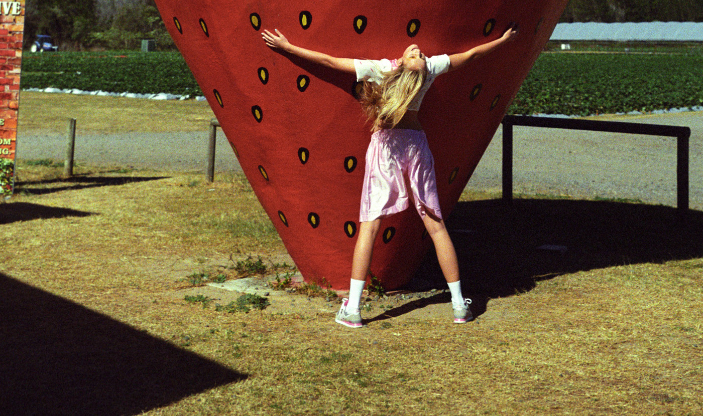 Kissed by a strawberry. And I kiss back. I am perfectly happy. Metling in the sun. Deeply connected to msyelf, other people and nature. Megan Cullen teamed up with stylist Madeline Roberts and natural beauty Talisa Quirk at IMG to captured the wonderful essence of a sunny day around the Sunshine Coast in Australia at The Big Pineapple, The Big Strawberry, The Big Cow and the Big Pelican for C-Heads. Make-up done by Penny Antuar at ARC Creative and hair by Iggy using Kevin.Murphy . The shoot features all Australian labels from P.A.M, Jenny Kee, Gail Sorronda, Verner, Karla Spetic and more.