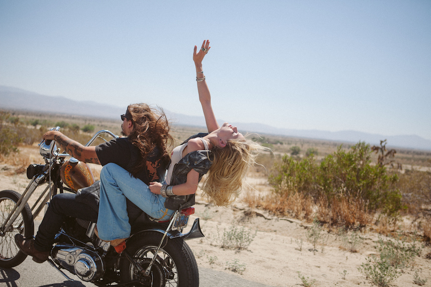 At Australian label Spell Designs it´s all about hand-crafted jewellery and adornments of leather, turquoise, sterling silver, hand-carved bone & wood, antique chain & gypsy treasures. Their newest lookbook features bombshell Ashley Smith at Society Management shot by Ali Mitton in the Californian desert (and you are right when this series reminds you on the amazing shooting with Jason Lee Parry some time ago) showcasing their newest pieces which are perfect for holiday, full of colour, bold florals and bright gypsy prints, paired back with some lovely broderie anglaise in whites, blacks and dusty blues. “We have an old and slightly tattered piece of paper taped to our wall, on it is scrawled our model ‘wish list’ – muses we’re dying to work with. Ash Smith has been on it ever since we saw her in Russh Magazine in 2010. So there we were, in the sweltering heat of the Californian desert, watching our muse Ashley Smith fly on down the highway on the back of a vintage Harley Chopper. Eyes stinging in the heat and dust. Pinching ourselves. Loving every moment.”