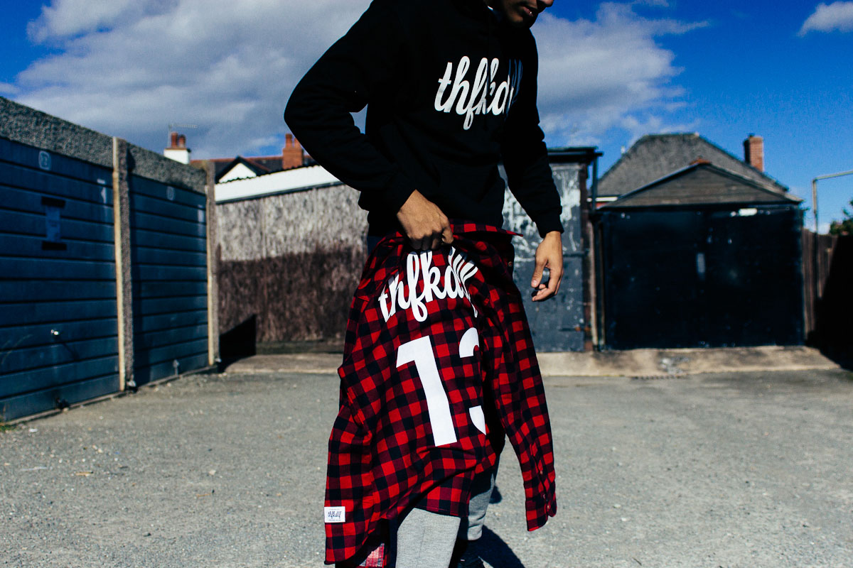 Jordan Adefeyisan with J’Adore Models is the new flagship for the UK clothing brand THFKDLF. The handsome and cool looking model poses for the latest A/W collection of the cool Shropshire based brand, that does everything itself; the design, printing and sewing. Even the shooting photographed by Jakub Taylor this time took place in their home town of Oswestry, Shropshire and Brand Owner’s Jakub Taylor and Daniel Tomley styled the shoot themselves as well. Is there anything those guys can´t do? The new collection features over 40 new items including printed denim and neoprene jackets, a range of hoodies, sweatshirts and sweatpants, a mix of cut&sew and printed tees, and a range of accessories including hats, bags and gloves. Rad!