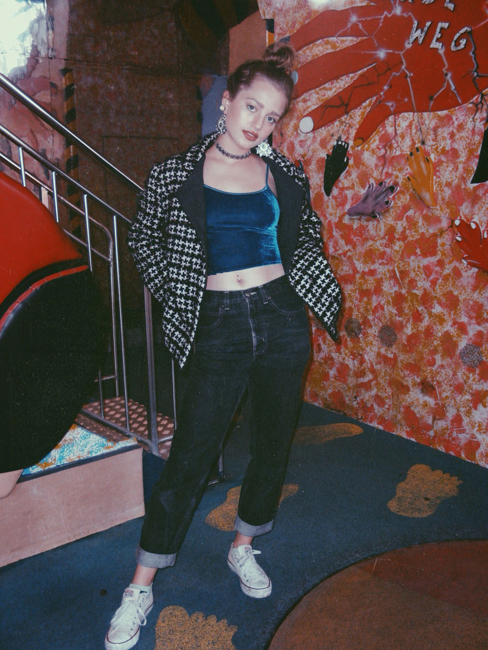 We totally adore the vintage look of the pictures, the perfect match for the aged “Viennese Prater”, like arisen from another time. Shot during the golden hour it tells a story of a girl living in her moments, just having an ice cream and enjoying her free time, while strolling through the amusement park. Nina and Maya put the outfits together with her self – made creations and some private vintage jewelry from Maya to add her own individual and personal style to the fashion. A mix of vintage made clothes, Los Angeles spirit and old styled photography.” Nina explains about the story: “We all have our worlds of imagination. We materialize them using various tools. If our worlds are merged with other worlds of imagination, then perhaps we can create something totally different. Something embedded in the real world, but so surreal as our imagination.”
