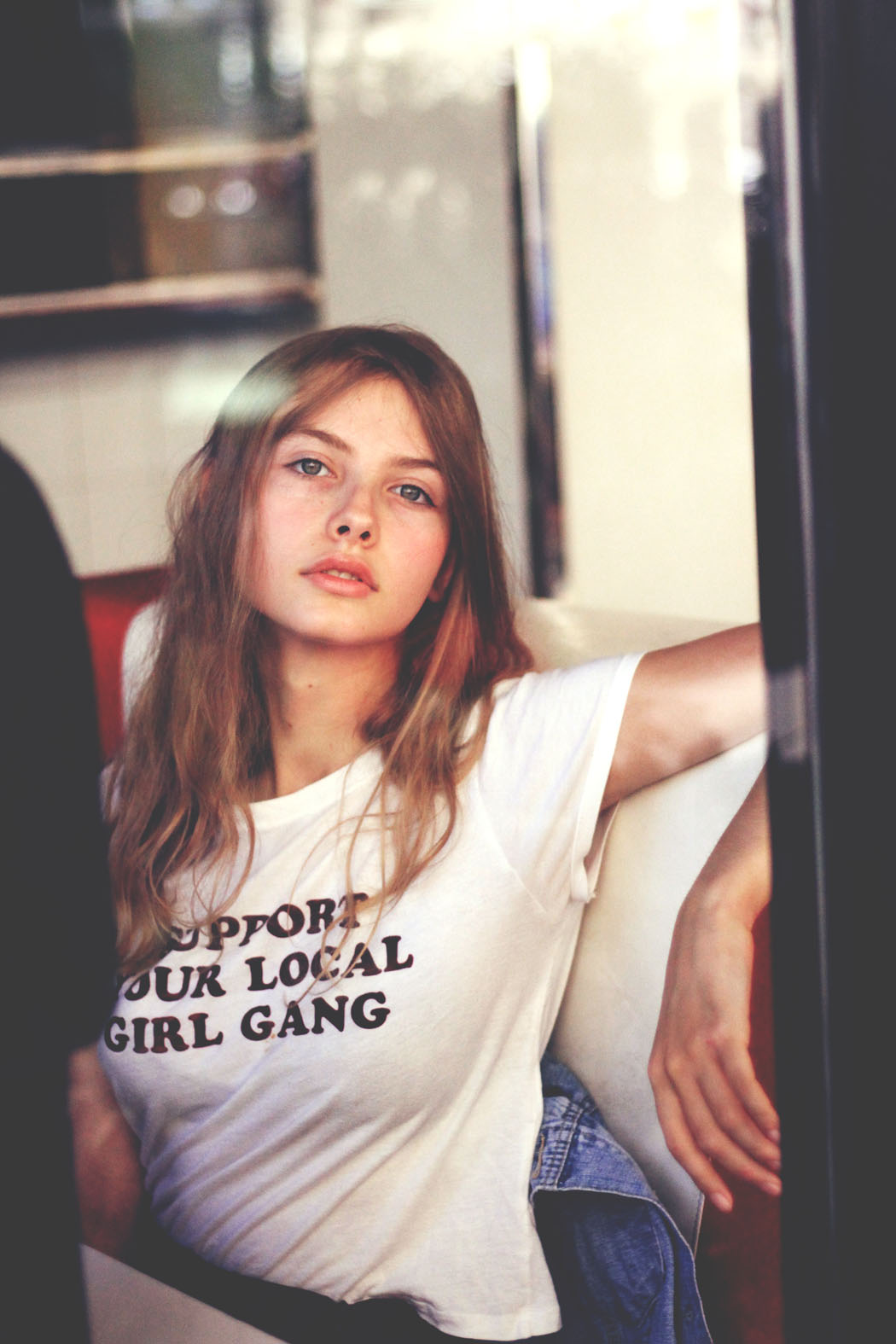 “This was Nina´s first shooting. But she surprised the full team with her total pro attitude. Her unintentional beauty definitely brings some special feeling in this pictures. Nina is performing as dreamy hippie teenager that doesn´t want to go back to school. She falls asleep in a restaurant on the table while she is listening to psychedelic rock music (Tame Impala – The less I know the better). She is dreaming of sitting in the school chair surrounded with the sky, and bored in the middle of nowhere.” Make up done by Snezana Karovic.