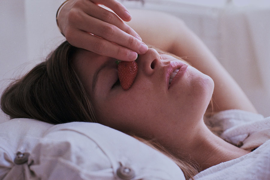 We love strawberries. And we love this shooting by photographer David Kirscher and model Gabriela Spader. The sun-drenched room in the lovely Paris apartment served as the perfect scenery for this shooting. All analogue photographed with a Canon AE-1 on Rollei 135 RPX 400.