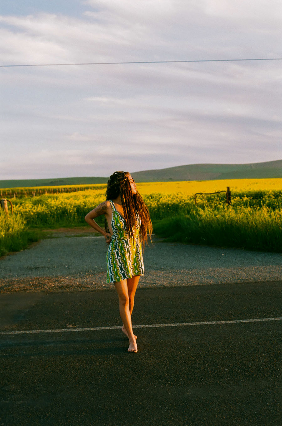 “I’d just met Tsele but the conversation flowed easily, he seemed comfortable in the strangeness of the world as I did.” tells us model Lo about her series with photographer Tsele Tommy Nthane. “We drove out an hour chasing the sunset light, a last minute shoot we decided on a few hours prior. I feel like the shoot itself captured some craving I have to run away somewhere quieter yet still all the while being my usual self.”