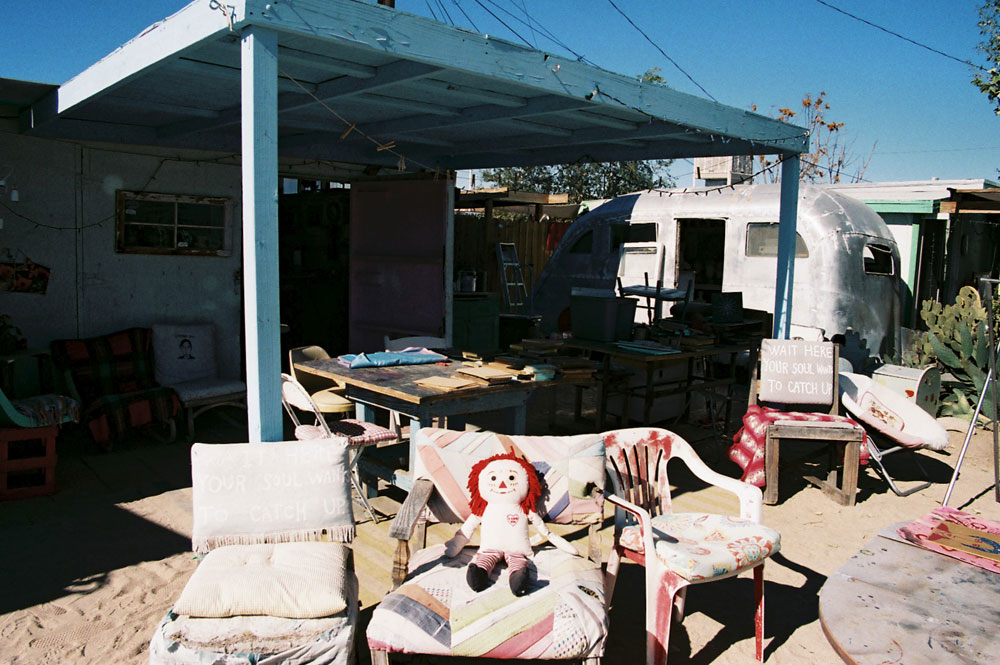 It was an accidental discovery as we were merely trying to find some public showers, (as you do when you’ve lived in your car road tripping around the states for three months), when we ventured up an alley way to find a little corner of the world that was unlike any other. Unique in its quirky crotchet creatures, teddy bears, hand painted clothing and even an intergalactic mirror spaceship that you could climb into, this place skyrocketed our imagination well and truly out of the Californian desert.