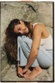 Through the lens of Canadian film photographer Jo Concetta, we step into a picturesque landscape where art, nature, and raw human emotion intertwine. The chosen location, a natural rock formation south of the city, brings us closer to the elemental textures of the earth that deeply influence Tayefi’s work. Jo shares with us: “For this photo series, we drove south of the city to a natural rock formation to be with these textures of the Earth. I wanted to lean into simplicity — a simple story of walking barefoot on the rocks, the breeze blowing, sipping lemon water, and the glow of the sun on her skin.”