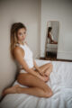 The sun didn’t show up that day. The typical Parisian house was stripped back to its essentials, a quiet space that felt almost weightless — perfectly in tune with the vision of Manlio, living in the Swiss Alps, not too far from Milan. His work moves along the line where intimacy meets analog texture, where film grain, light, and skin blend into imagery that remains raw, timeless, and close. “Through minimal setups and vintage lenses, I aim to capture moments that feel both fragile and enduring.” And so does this series with Sofia, a French model based in Paris — a slow, unhurried moment where everything narrows down to her presence.