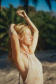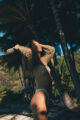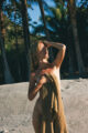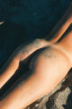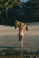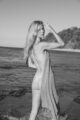There is something effortless in the way Freja exists in this space — both grounded and free. The private beach setting creates a feeling of isolation and calm, where nothing feels performative. Just her and the elements.